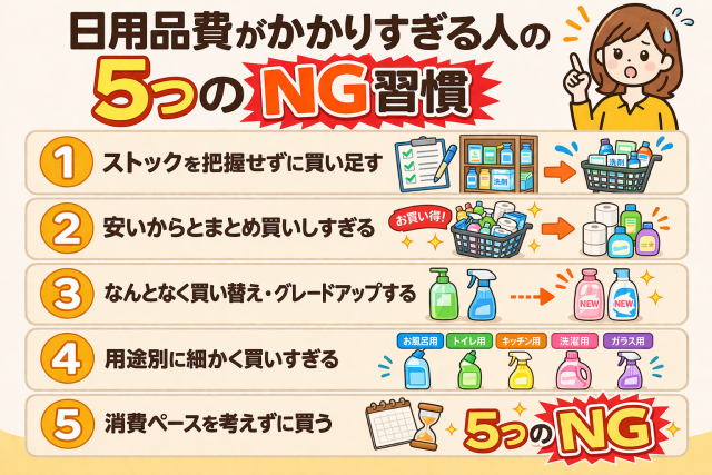 これらの習慣を見直し、必要な分だけを計画的に買うことが、日用品費を無理なく抑えるポイントです。